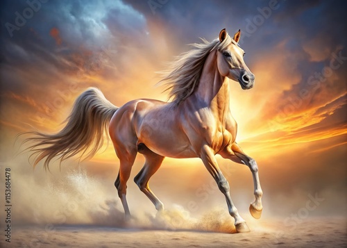 Majestic Arabian, white canvas, conceptual art.