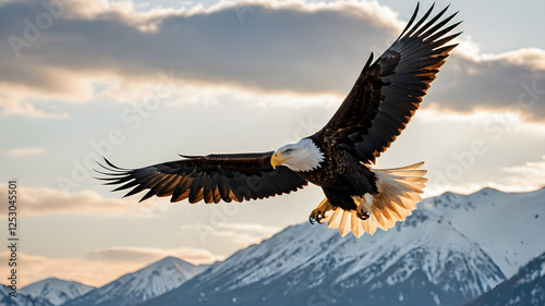 Majestic Bald Eagle in Flight Against a Stunning Cloudy Sky. Generative AI
