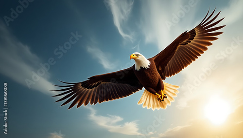 Majestic Bald Eagle Soaring with Sunlit Clouds Behind