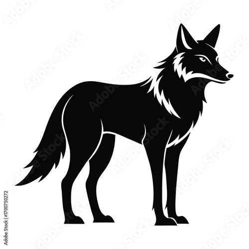 Majestic Black Silhouette of a Standing Wolf: A Striking Wildlife Illustration with Sharp Details and Elegant Lines