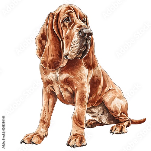 Majestic Bloodhound Dog Breed, Sitting Pose, Detailed Illustration.