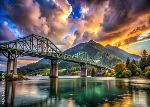 Majestic Bridge of the Gods, Cascade Locks, Oregon: Dramatic Mountain & Cloud Landscape Photography