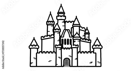Majestic castle with towers and turrets, a fairytale kingdom illustration