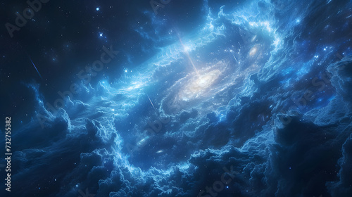 Majestic dance of celestial bodies in a cosmic ballet, where planets and galaxies move in harmony, embodying the eternal clockwork of the universe, with a comet trail that weaves through space