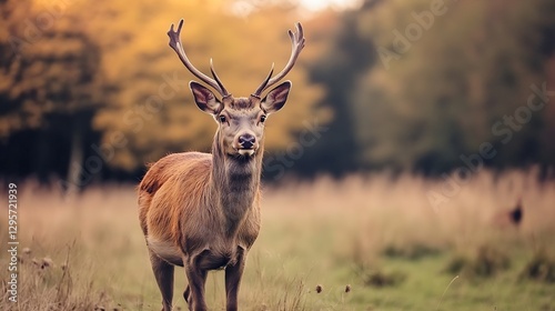 Majestic Deer Standing Gracefully in a Serene Meadow Surrounded by Autumn Colors : Generative AI