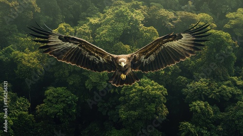 eagle, bird, flight, wing, forest, jungle, tree, nature, wildlife, animal, predator, avian, soaring, power, freedom, wilderness, environment, ecology, majestic, beauty, sky, green, brown, feather, talon, beak, head, eye, view, landscape, background, scene, image, photo, picture, habitat, conservation, outdoors, adventure, wild, powerful, apex, hunt, rapacious, bird of prey