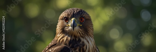 eagle, bird, bird of prey, avian, predator, majestic, wild, nature, wildlife, feather, beak, talon, eye, orange, brown, plumage, powerful, fierce, intense, gaze, stare, sharpened, sharp, blur, bokeh, green, background, forest, outdoors, sunlight, light, shadow, detail, texture, close, up, portrait, animal, fauna, beauty, magnificent, head, wing