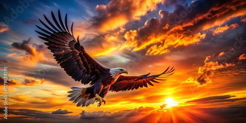 Majestic Eagle Silhouette at Sunset - Powerful Bird of Prey in Flight
