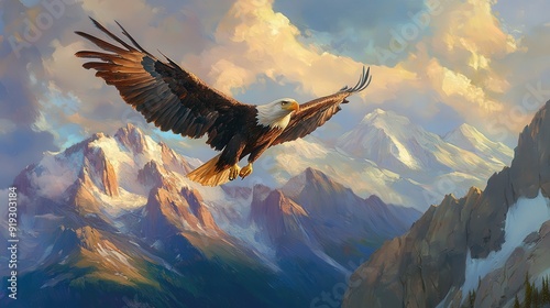Majestic eagle soaring above a rugged mountain range, symbolizing freedom, strength, and the spirit of the wild