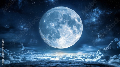Majestic Full Moon Night Sky Cloudscape Celestial Scene Starscape