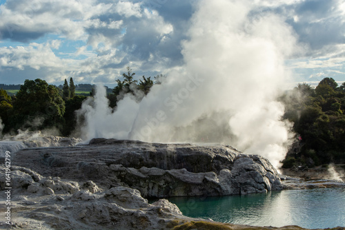 geothermal, geyser, steam, hot spring, nature, landscape, travel, tour tourism, scenic, earth science, geothermal energy, blue water, cloud, sky, environment, relaxation, adventure, exploration, natural beauty, ecotourism, calmness, scenic view, wilderness