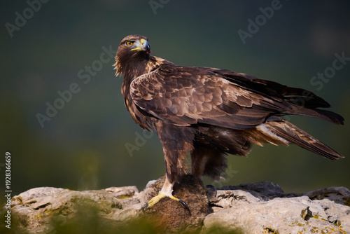 Majestic golden eagle perched on a rocky landscape