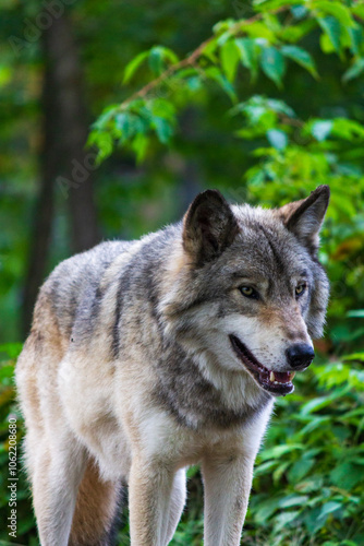 Majestic Gray Wolf in Lush Forest Landscape