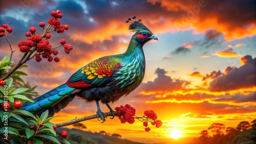 Majestic Himalayan Monal Silhouette: Red Berries, Wildlife Photography, Bird Silhouette, Himalayan Bird