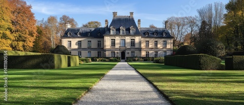 manor, historic, architecture, garden, greenery, path, tree, landscape, villa, elegant, estate, outdoors, nature, fall, lawn, sunlight, sky, cloud, symmetry, tranquil, beauty, scene, classic, design, residential, front, entrance, peaceful, sculpted, scenery, heritage, classicism, afternoon, colourful, foliage, scenic, grandeur, opulence, panoramic, view, perspective, traditional, marvellous, impressive, stylish, inviting, rural, regal
