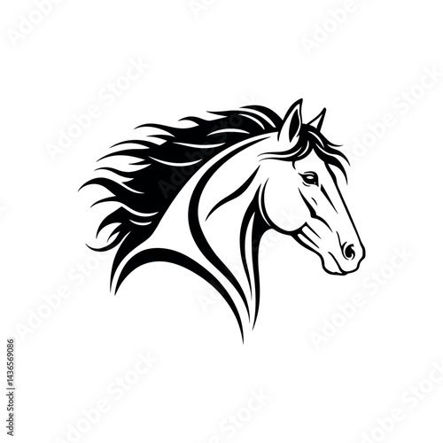 Majestic Horse Head Profile Elegant Black and White Vector Illustration