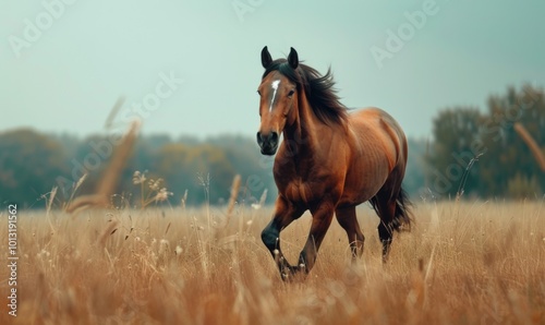 Majestic horse running through a field, 4K hyperrealistic photo