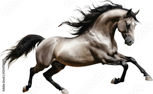 majestic horse with flowing mane gallops dynamically on transparent background, showcasing its strength and grace.