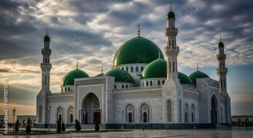 Majestic Islamic Mosque Architecture Under a Dramatic Sky