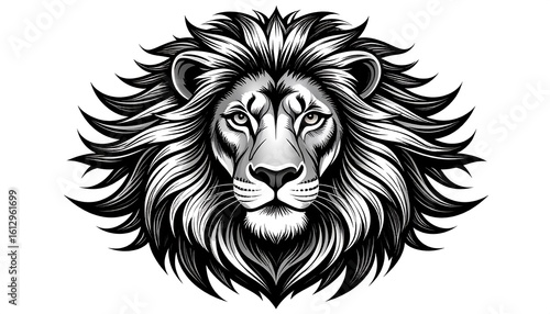 lion, head, mane, graphic, black, white, art, design, animal, portrait, stylised, illustration, powerful, regal, pride, wild, nature, bold, detail, greyscale, vector, tattoo, symbol, symbolism, abstract, vintage, strong, ferocious, drawing