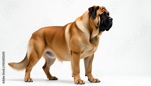 Majestic mastiff, powerful stance, white background, eyes, nose