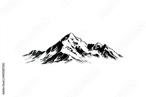 style, drawing, range, mountain, scenery, art, design, ink, snowy, silhouette, detailed, graphic, mountain, peak, snow, dramatic, white, vignetting, illustration, black, landscape, nature, textured, elegant