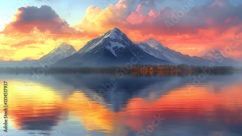 Majestic Mountain Range Reflected in Calm Water at Sunset