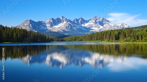 Majestic Mountain Range Reflected in Crystal Clear Mountain Lake : Generative AI