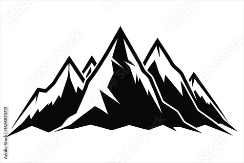 mountain, mountain, range, peak, peak, summit, summit, alpine, rocky, snowy, icy, ridge, ridge, craggy, jagged, silhouette, black, white, background, isolated, graphic, illustration, design, vector, icon, symbol, nature, landscape, scenery, adventure, climbing, hiking, trekking, wilderness, exploration, majestic, grand, epic, bold, contrast, minimalist, art, drawing