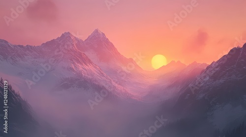 Majestic Mountain Sunset: Witness the breathtaking spectacle of a fiery sunset casting its golden hues upon snow-capped mountain peaks.