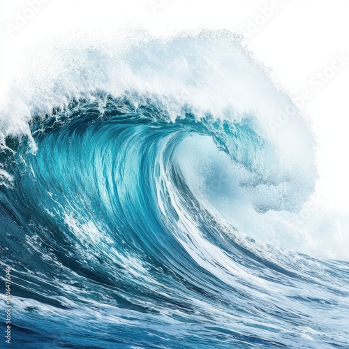 Majestic ocean wave cresting with foam against a bright white backdrop