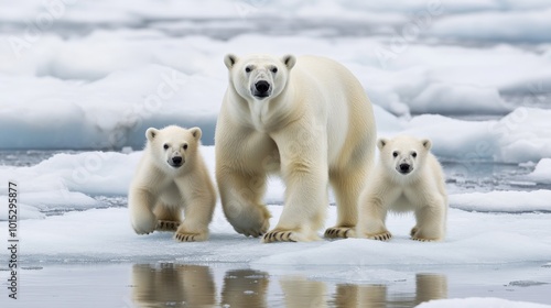 Majestic Polar Bear Family Amidst Icy Tundra Landscape