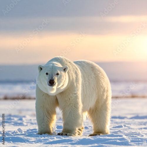 polar, bear, majestic, snow, landscape, arctic, winter, wildlife, animal, white, fur, powerful, nature, cold, glacé, sunlight, sunrise, sunset, wild, beauty, strong, freezing, habitat, predator, sharpened, image, stunning, photo