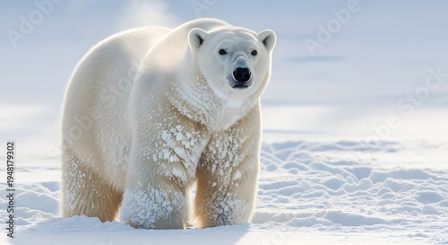 polar, bear, ursus, arctic, ice, snow, winter, cold, glacé, tundra, wildlife, animal, mammal, predator, carnivore, white, fur, coat, powerful, strong, majestic, regal, standing, alert, gazing, looking, outdoors, nature, environment, habitat, north, pole, sea, glacier, chilling, frigid, barren, remote, wilderness, endangered, species, conservation, climate, change, global