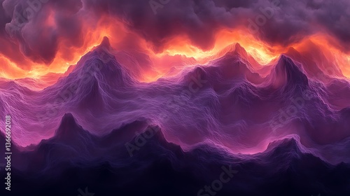 purple, orange, dramatic, landscape, mountain, sky, cloud, colourful, gradient, abstract, texture, peak, horizon, light, dark, shadow, dawn, dusk, twilight, nature, scenic, aethereal, vapour, hazy, vibrant, glowing, airy, dreamlike, sublime, mystical, ridge, form, atmosphere, huge, beauty, artistic, visualisation, panoramic, flowing, undulation, elevation, wilderness, soft, mysterious, surreal, celestial