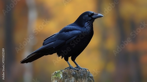 Majestic Raven in Autumnal Woods: A Stunning Wildlife Photo