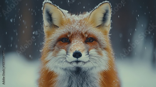 Majestic Red Fox Amidst Soft Snowfall with Snow-Covered Landscape, Capturing the Beauty of Nature and Winter Wildlife in a Serene Environment