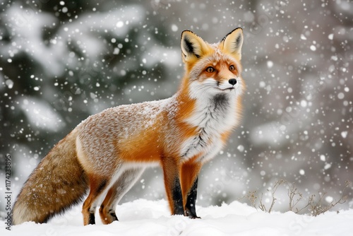 Majestic Red Fox Standing in a Snowy Field During Wintertime