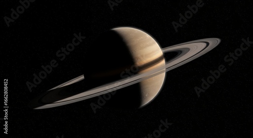 Majestic Saturn with Rings in Dark Space