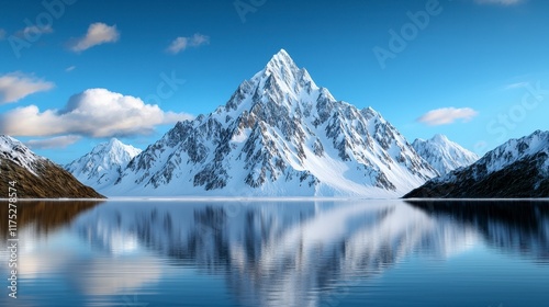Majestic snow-capped mountain reflection serene lake nature landscape photography tranquil environment panoramic view natural beauty