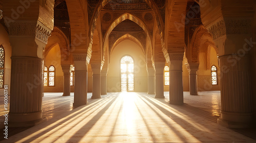 mosque, interior, sunlight, golden light, warm, architecture, beam, serene, spiritual, decor, design, arch, religious, islamic, peaceful, tranquil, holy, historic, sacred, cultural, traditional, artistic, middle east, elegant, building, spirituality, inspirational, muslim, prayer, worship, calm, architectural, divine, sunlit, holy place