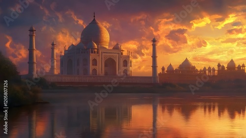 Majestic Taj Mahal Sunset Reflection Beauty