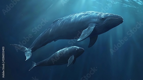 Majestic whale silhouette underwater with sunlight high resolution picture