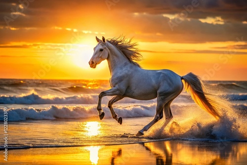 horse, beach, silhouette, sunset, white horse, ocean, equine, animal, nature, sun, golden hour, coastal, landscape, photo, wildlife, majestic, powerful, freedom, speed, energy, dynamic, graceful, elegant, beautiful, wild, sand, wave, horizon, summer, light, shadow, dramatic, art, image, picture, photo, royalty free, hi-res