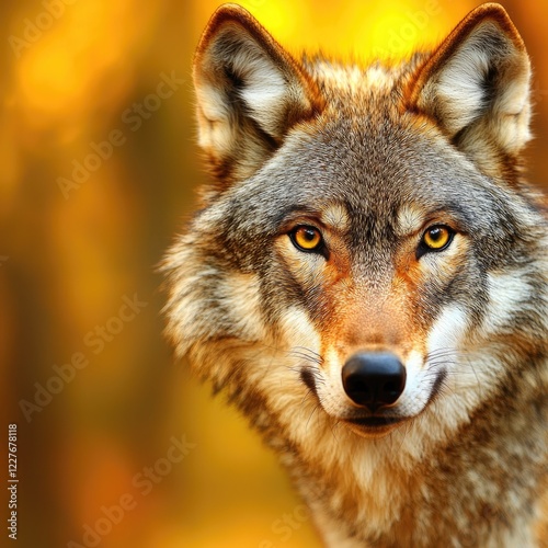 Majestic Wolf Portrait in Autumn Forest with Warm Colors and Light