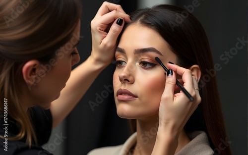 makeup artist applying editorial look for fashion magazine shoot. High quality