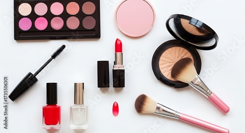 make-up, cosmetic, eyeshadow, reddening, lipstick, mascara, nail polish, brush, beauty, product, palette, fashion, accessory, woman, girl, skincare