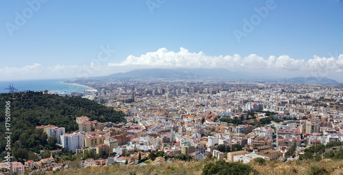 from above, view, urban, top, spain, seascape, sea, panoramic, panorama, outdoors, nobody, mountain, málaga, house, horizon, high, far, europa, day, coastal, coast, city landscape, city, building, andalusia, aerial