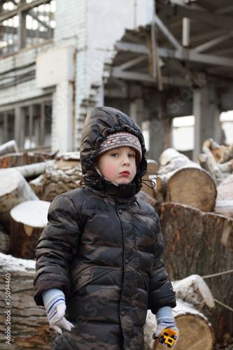 Мальчик на фоне разрушенного здания