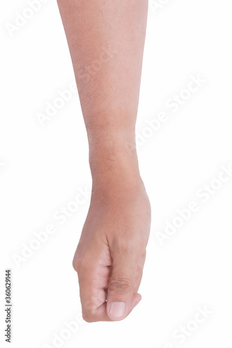 Male asian hand gestures isolated over the white background. Hand Grab Thing with fingers Action.